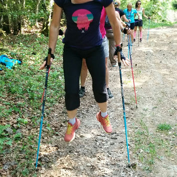 Activité sportive pratiquée avec des bâtons spécifiques. Les bâtons sont utilisés pour la propulsion, les bras sont donc autant mobilisés que les jambes.